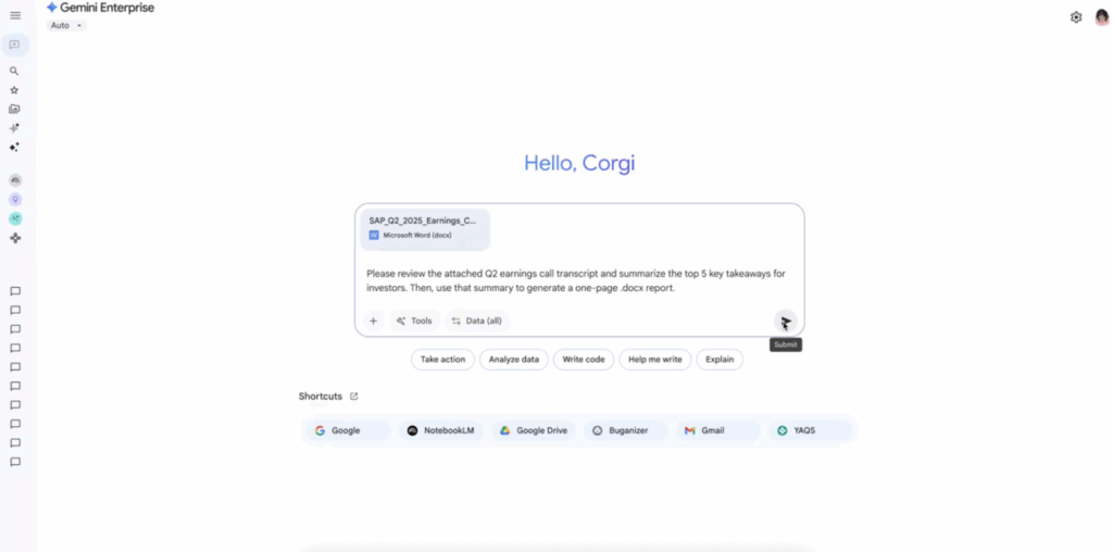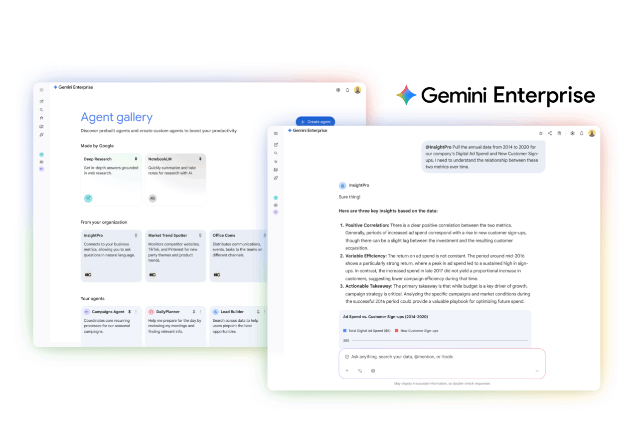 With Gemini Enterprise, every individual in any organization can shift from tedious tasks to high-impact work, thereby enhancing team productivity, fostering creativity, and improving business outcomes.