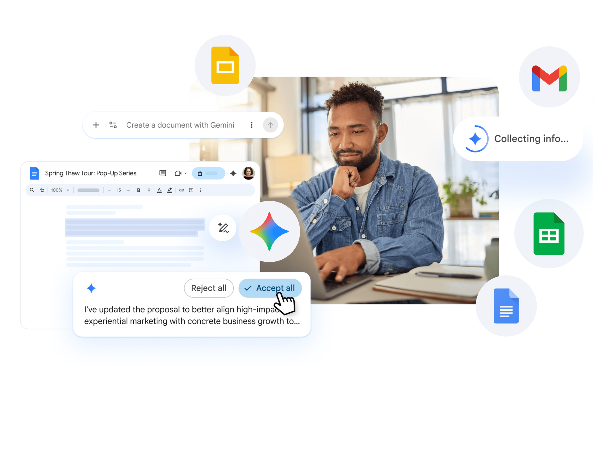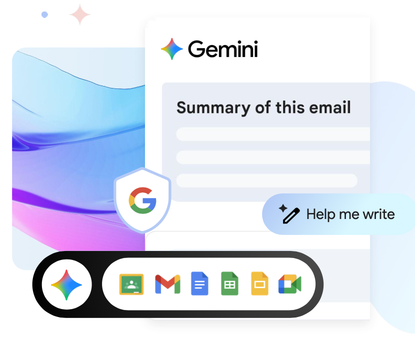 Do your best work faster with AI woven into apps that you use every day like Gmail, Docs, Sheets, Slides, Meet, Chat, Vids, and more.